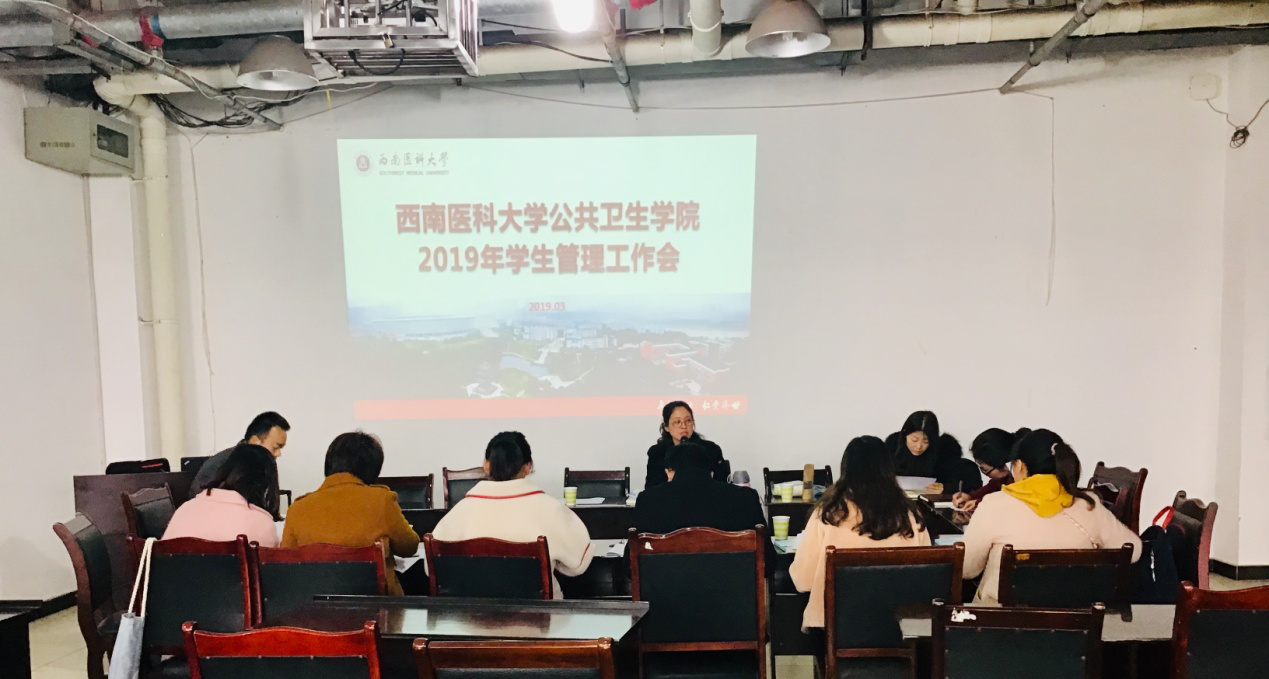 3月15日中午,公共卫生学院2019年学生管理工作会于学院会议室召开,学院党总支副书记李星、教务科科长张雷、学生科副科长彭丽冰、全体兼职班主任及辅导员参加本次会议。