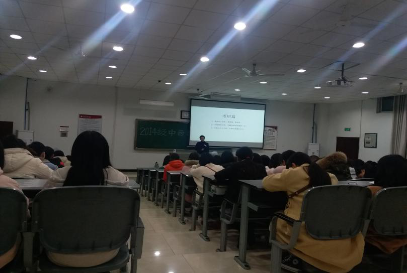 会上,余海龙将收集到的考研信息、考研成绩情况做了分析,从专业的选择、复试注意事项、调剂信息关注和选择等各个环节作了讲解,积极为同学们提出建议。帮助同学们更加从容的走进复试考场,获得进一步深造的机会。