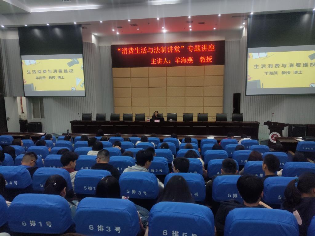 羊海燕围绕2019年消费者权益日主题——“信用让消费更放心”,从消费者权益保护法的深层次解读、网络消费新特点、消费维权方式及途径等方面,结合同学们日常关心和关注的消费维权展开了讲座。