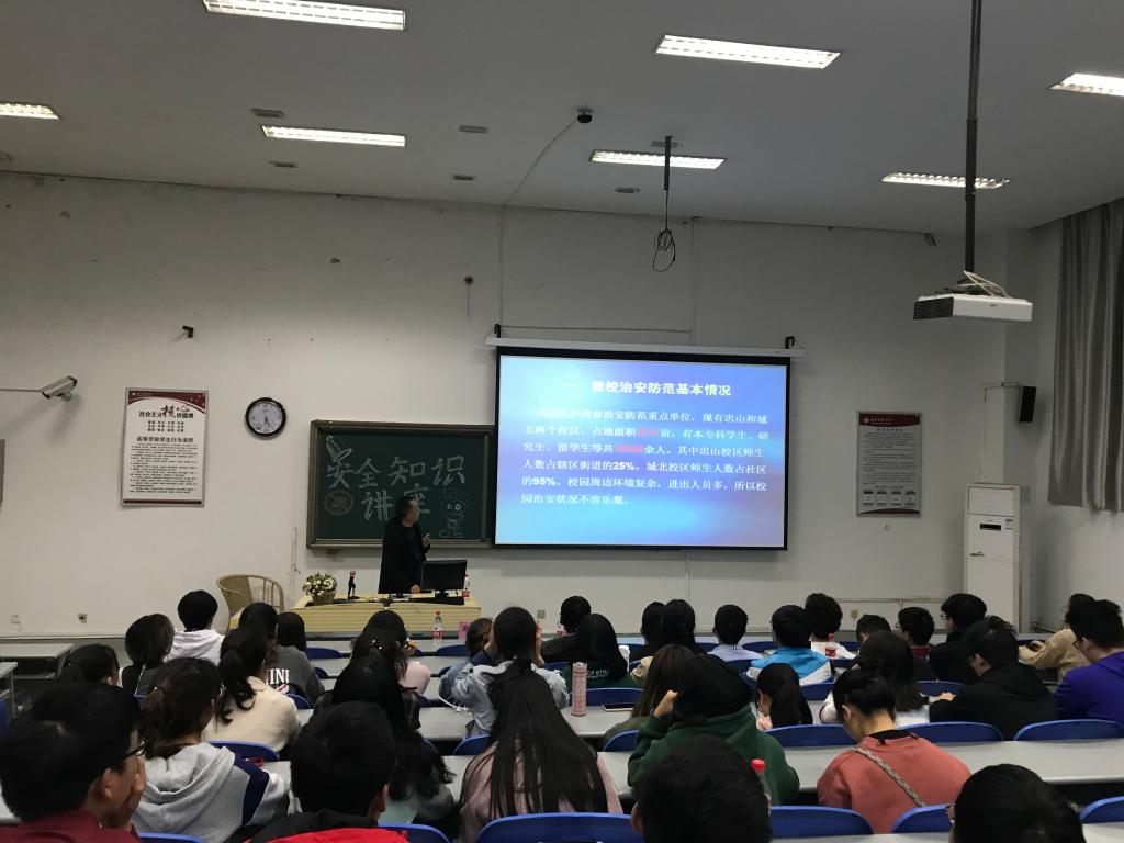讲座上,俞扬君详细研判了我校安全形势现状,向同学们介绍了政治安全、人身安全、财产安全、消防安全等七大方面的问题。通过列举在高校生活中发生的真实案例与同学们详细讲述。他指出大学生安全意识较淡薄,易轻信他人以至于发生钱财损失等的不良事件。讲座最后,他希望同学们珍爱生命,珍惜自我,遵纪守法,成为一名文明、健康、有为和诚信的大学生。