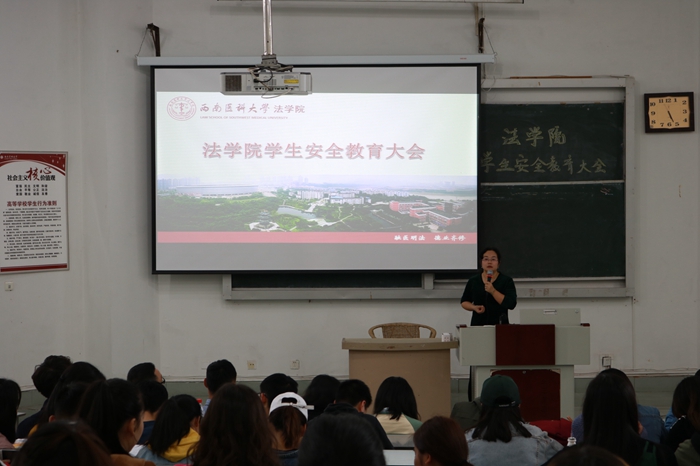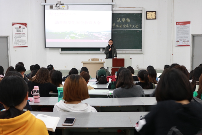 3月28日下午,法学院学生安全教育会在鸿文楼204教室召开,法学院党总支副书记黄莉、学生科副科长周正颐及法学院全体在校学生参会。
