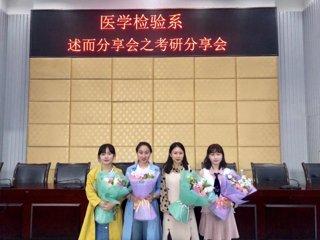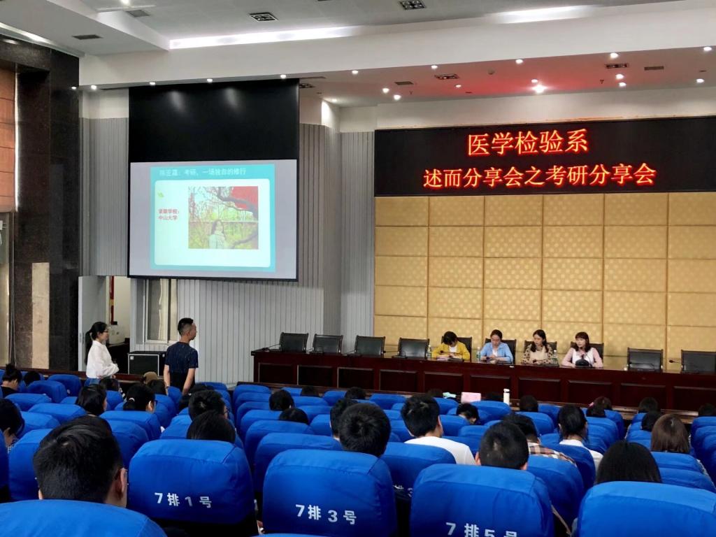 4月21日下午,医学检验系在城北第二学术报告厅成功举行“述而分享之考研经验分享会”。出席本次分享会的有医学检验系辅导员何顺姣、2015级医学检验技术1班曾倩、2015级医学检验技术1班陈亚霜,2015级医学检验技术2班李欣洁和2015级医学检验技术3班周希月,以及检验系2017级、2016级全体同学。