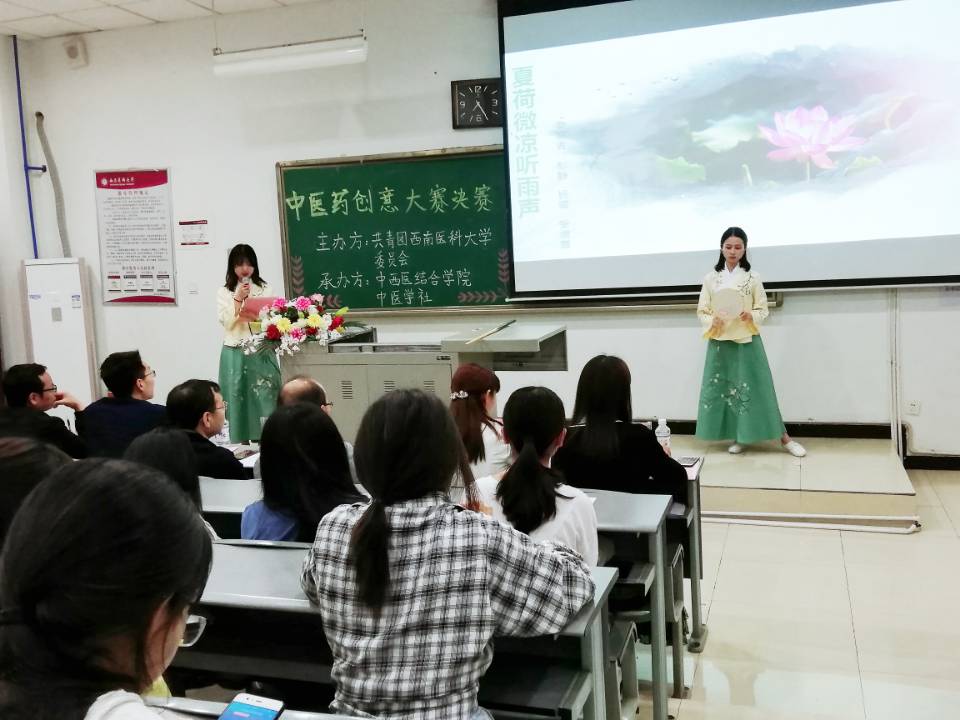 4月20日晚七点,西南医科大学第三届中医药创意大赛决赛在海川楼413拉开帷幕。本次比赛由校团委举办,中西医结合学院分团委承办。中西医结合学院方剂教研室主任王全,中医基础教研室余海龙,附属中医院制剂室主任蒲清荣,呼吸内科王俊峰,物价办公室主任蒲敏,中西医结合学院分团委书记苏娜出席本次活动并担任活动评委。