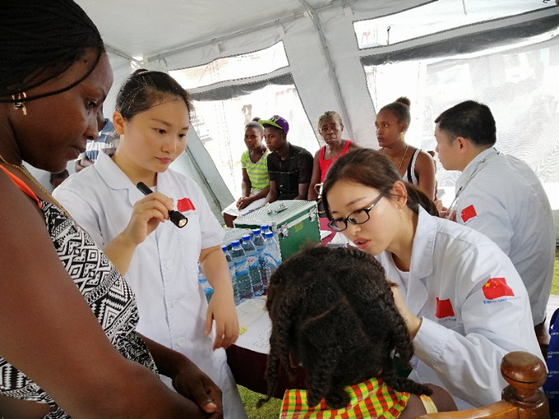 附属口腔医院第二批援圣普队员参加了此次义诊活动。当天艳阳高照,义诊队伍在广场上搭帐篷为当地人民进行义诊,整个医疗队义诊人次84人次。医疗队不仅为当地人民义诊,还为她们免费送药。活动虽然持续时间只有五个小时,但是当地人民非常感谢我们为他们看病送药,都说着“muito do bem!”(非常感谢)。同时也得到了当地卫生部的肯定与赞扬,卫生部长亲临现场慰问医疗队队员。