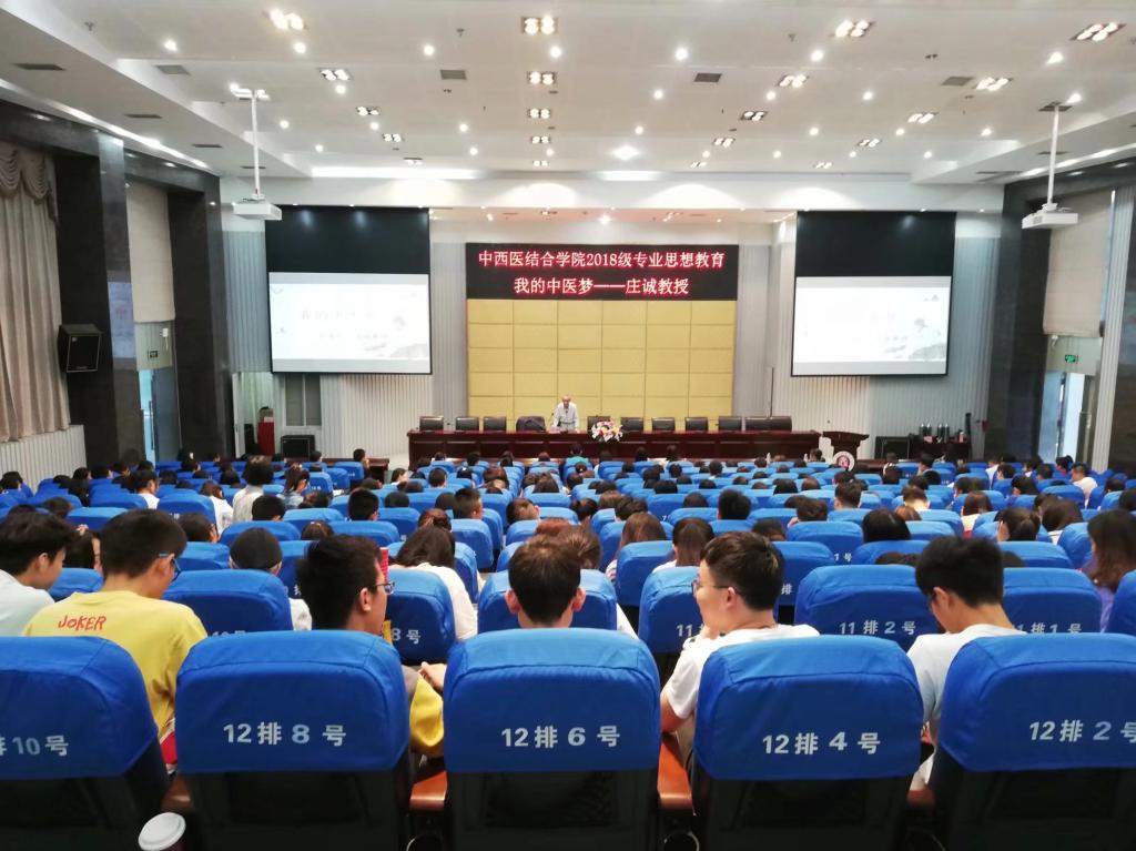 “梦想不抛弃苦心追求的人,只要不停止追求,你们会沐浴在梦想的光辉之中”。庄诚教授结合其自身经历向同学们诉说他的追梦之路。他提到追梦路上,困难与挑战是必然的,但怀有一颗刻苦、勤奋、热情的心则是我们实现梦想的关键因素。并讲授作为中医人,读名书、识药背方、跟名师是实现中医梦的基础。读中医经典与各种病案,学习这些医案中强有力的辩证思维;识药背方,作为中医人必须熟悉掌握各类中药材、方剂的功效与应用;跟名师,学习名师的医德医风医术,早日成为医之大家,造福人民的健康。