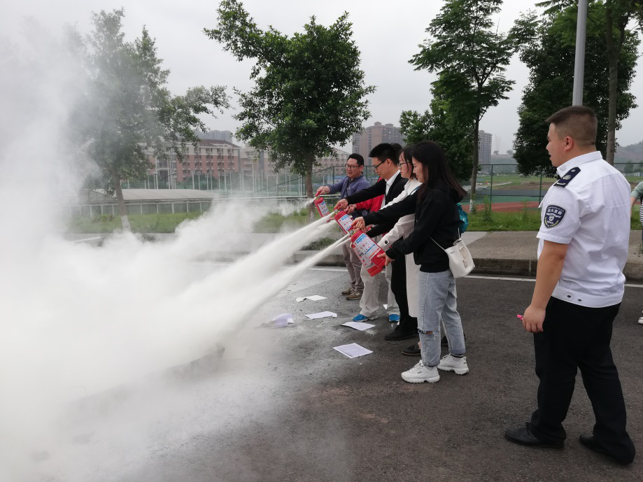 理论培训结束后,师生们在教官的指导下顺利的完成了消防安全演练。