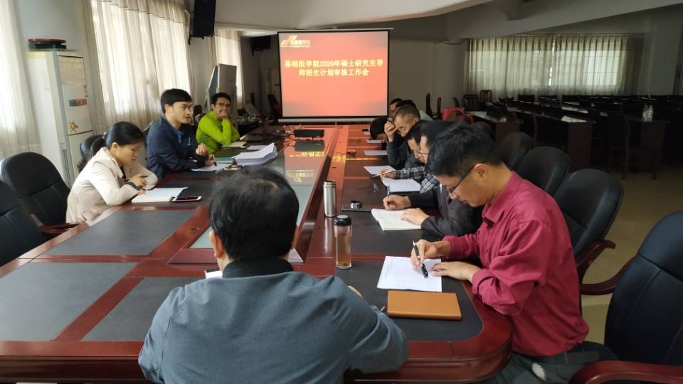 5月29日上午,基础医学院在学院会议室召开了2020年硕士研究生导师招生计划审核工作会,基础医学院学位评定委员会全体委员参会,会议由学院院长代荣阳主持。