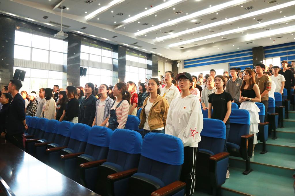 首先,全体人员起立,迎团旗,唱团歌。接下来,严光菊通过援引欢乐喜剧人节目恶意丑化我国古代巾帼英雄花木兰的形象;某歌手大赛宣传片中,随意乱配音经典红色电影《闪闪的红星》;将抗日英雄邱少云比喻成“半面熟烤肉”的网友“作业本”等例子,给学生讲解及分析了亵渎英雄这种行为会给国家和民众带来多大的危害。这主要体现在三个方面:第一,误导青少年,颠倒是非;第二,为“恶”而乐,跨越道德底线;第三,危及国家文化安全。四川警察学院学生代表钟灵逍用一段简短的视频,让我们了解了作为一名警察,身上所肩负的责任与担当,带我们深入了解了警察这一光荣的职业。在讲座结束之际,同学们用心思考,并就本次主题向严光菊老师提出了一些问题,包括如果在生活中遇到这类事件,我们的做法怎样才是恰当的,以及“丑化英雄是文化商业化,历史娱乐化,政治世俗化的需要”是否正确等,严老师耐心地为同学们解答。