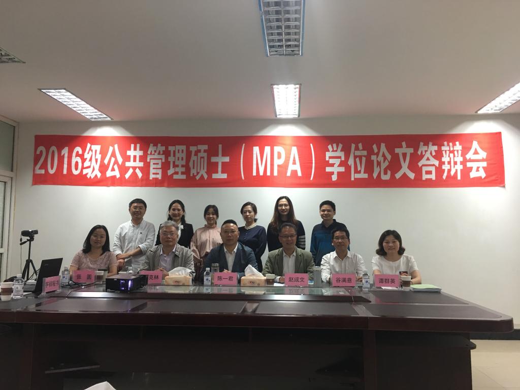 5月28日,我校2016级公共管理(MPA)专业学位研究生毕业论文答辩会在荟文楼202会议室举行。这是我校首届MPA毕业生,共有5名同学申请答辩。答辩邀请了国家教育部管理科学与工程类本科教学指导委员会委员、四川轻化工大学陈一君教授担任答辩委员会主席,赵成文教授、刘克林教授、谭群英副教授、谷满意副教授、张圆副教授担任答辩会委员,2017级、2018级部分MPA同学参加答辩会。