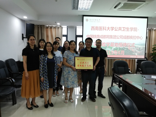 6月11日下午,公共卫生学院-中国铁路成都局集团公司成都疾控中心(以下简称成都铁路疾控中心)实践教学基地授牌仪式在德诚楼521举行。成都铁路疾控中心所长沈捷、副所长何世军、劳动人事教育科科长涂晓玲、业务科副科长胡静,公共卫生学院党政领导和相关科室负责人等参加了授牌仪式。