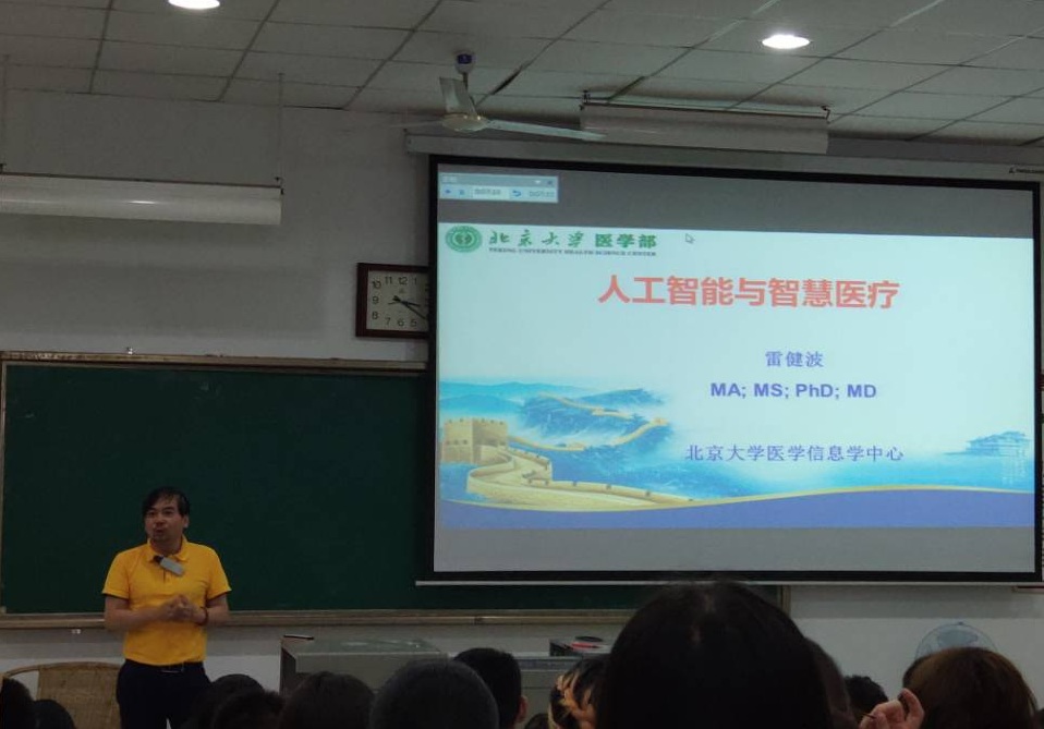 6月16日,医学信息与工程学院在海川楼开展了“人工智能与智慧医疗”专题讲座,邀请了学院学术院长、北京大学医学信息学中心常务副主任雷健波教授为同学们做讲座。医学信息与工程学院全体在校生参加了此次讲座。