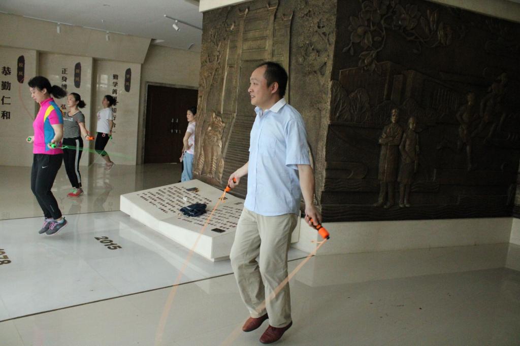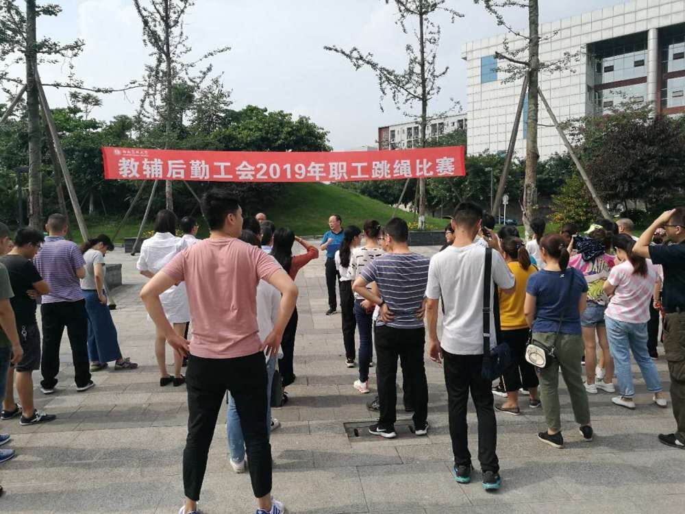 为庆祝新中国成立70周年及中国共产党成立98周年,丰富教职工业余生活,增强团队荣誉感和凝聚力,6月21日下午,教辅后勤工会在城北校区校史陈列馆广场举行了教职工跳绳比赛。