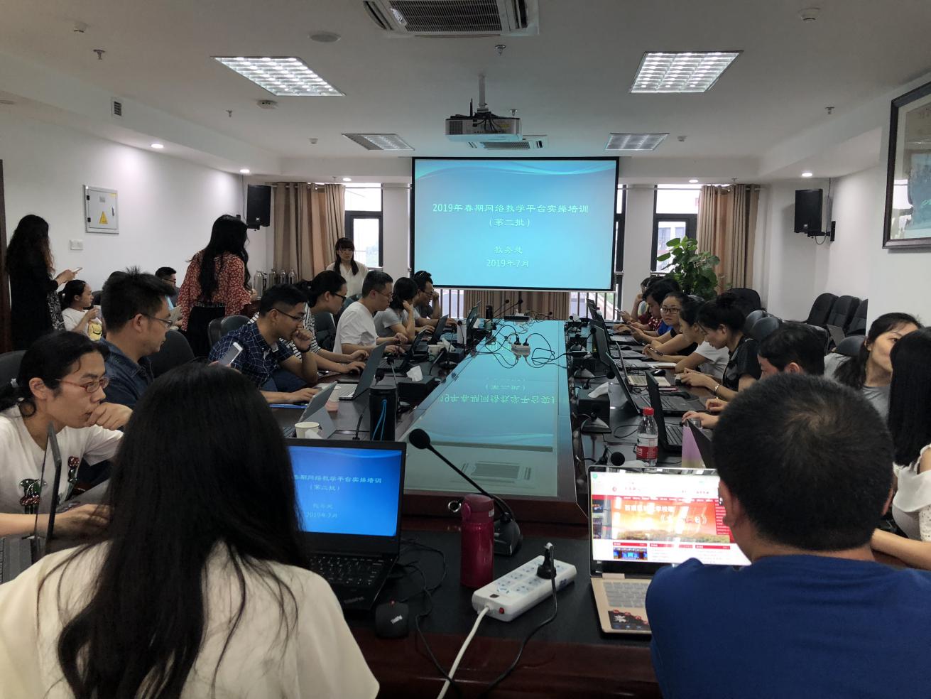 7月3日下午,教务处在城北校区德诚楼521会议室举办了网络教学平台实操培训会,邀请学校网络教学平台——超星泛雅平台罗劲东工程师对学校教师代表进行平台实操讲解。学校2018年、2019年在线开放课程主干教师等40余人参加了培训。