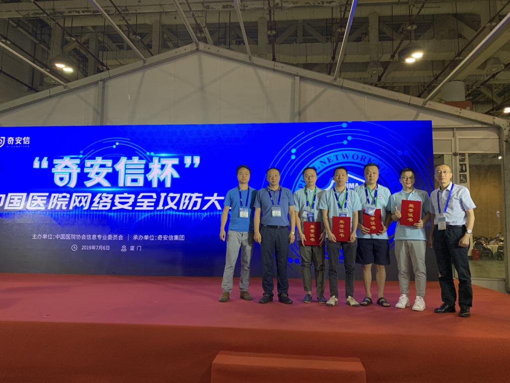 7月6日,“奇安信杯·中国医院网络安全攻防大赛”决赛在厦门成功举办,附属医院网络管理中心安全管理团队在医院院长杜一华的指导下,由网络管理中心副主任刘坤尧带领邹健、宋阳、范根及附属医院安全运维现场工程师段凯敏参赛。