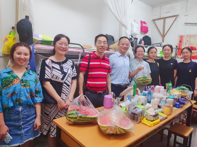 8月26日下午,口腔医学院党委书记李正新、院长肖金刚,党委副书记徐茜,副院长郭玲、副院长屈进,学生科科长罗茂璇、分团委书记刘星宇深入学生寝室开展夏日送清凉活动,为离家的孩子们送去冰镇西瓜,带来夏日的清凉。