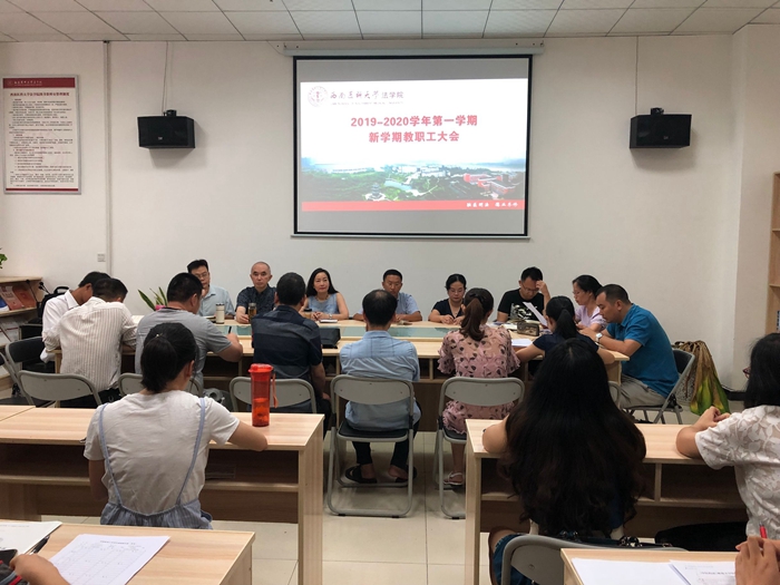 8月22日上午,法学院2019年秋季新学期职工大会在法学院图书资料室召开。全体教职工参加了会议,会议由院长罗刚主持。