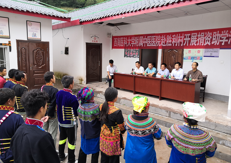 8月29日,附属中医医院2019年栋梁工程助学金发放仪式在凉山州普格县胜利村民俗文化广场举行。泸州市龙马潭区对口帮扶普格县前方指挥部副指挥长、县委办副主任周德斌,县委宣传部副部长张启泉,附属中医医院下派至胜利村第一书记周勉及帮扶队队员左小波、钱浩,胜利村今年考上大学的7名学生等参加了仪式。