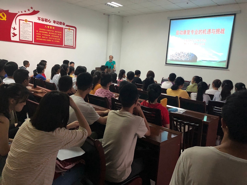 讲座中,侯乐荣教授就当前运动康复专业的机遇和挑战,为同学们展开了一场别开生面的专业讲座,为不了解运动康复的新生们指明了学习的目标和努力的方向。讲座气氛活跃轻松,使在座的同学受益匪浅,并对自己的专业有了更深的理解。