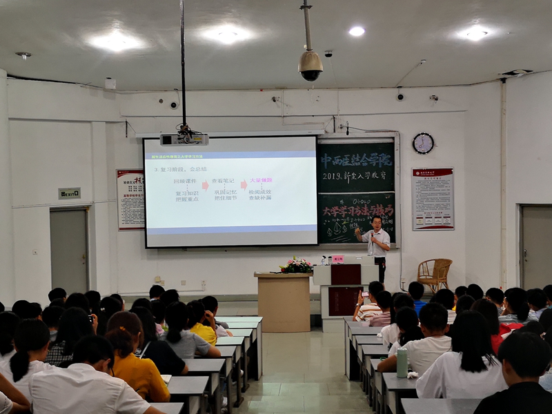9月6日晚7点,中西医结合学院2019级新生适应性教育讲座如期举行。此次讲座由基础医学院免疫学教研室的周云刚老师主讲,中西医结合学院2019级全体新生参与了本次讲座。