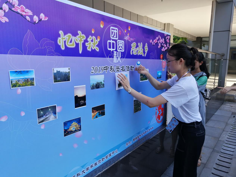 活动中,勤工俭学会主席首先对活动内容进行了详细介绍。随后,活动正式开始,同学们纷纷在签名板上粘贴各自家乡的风景照,写下对家乡、家人美好的祝福,表达着对中秋佳节和家乡家人的深深眷恋。