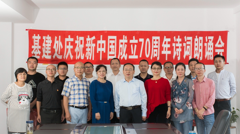 9月26日,基建处在德诚楼912开展了庆祝新中国成立70周年诗词朗诵主题活动。活动嘉宾教辅后勤党总书记陈家良、副书记吕春,基建处全体人员参加了活动。