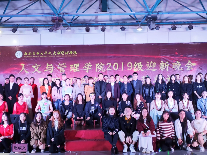 11月8日晚7点,人文与管理学院在稻香苑三楼城北活动中心举行2019级迎新晚会。人文与管理学院院长赵成文、副院长谷满意等学院领导、各教研室老师、人文与管理学院全体学生以及医视悦眼镜公司总经理陈川参加此次晚会。
