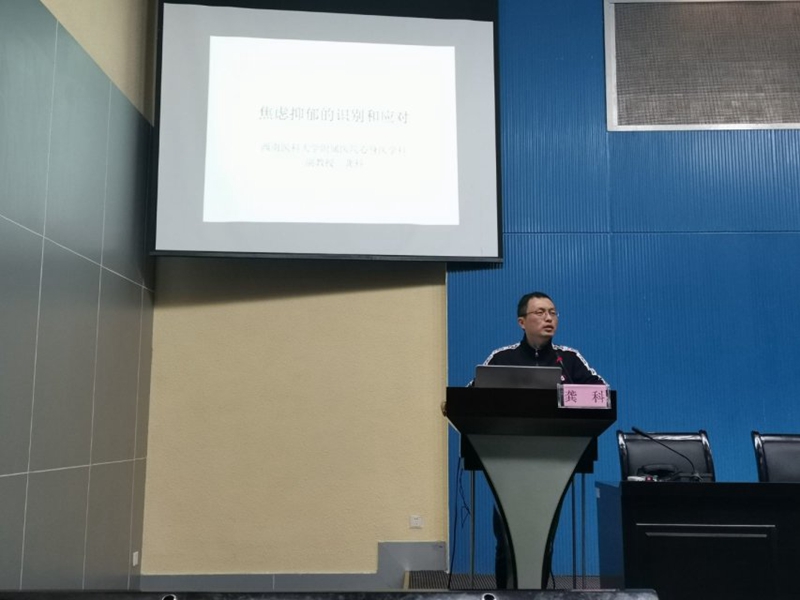 日前,医学影像系“焦虑抑郁的识别与应对”心理健康主题讲座在忠山校区学术报告厅举行。附属医院心身医学科副教授龚科担任主讲,医学影像系学生科辅导员黄敏及医学影像系2016、2017级学生代表共计200余人参加了本次讲座。
