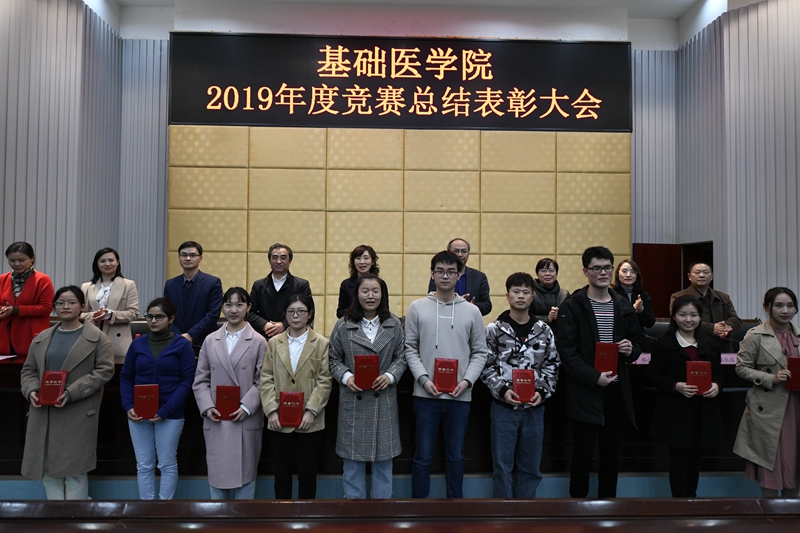 会上,基础医学院院长代荣阳首先致辞,赵宏贤、陈文碧、赵春玲3名教师分别就3个大赛做了总结与经验分享,并对下一届的竞赛做了动员;与会的领导宣读了各类比赛的获奖名单,并现场为获奖学生代表和三项竞赛的优秀指导教师颁发了获奖证书;2017级临床医学专业夏澜、2016级临床医学专业刘芮杉2同学代表参赛选手和获奖学生做了发言。