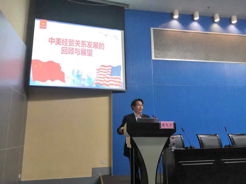 首先,唐光才书记以中美经贸关系为出发点,回顾了中美经贸关系40年来所取得的成就和面临的问题,并提出了中国的解决立场和应对方案。田小霞老师阐述了中国革命的发展进程,总结了党和人民所取得的重要历史成就。黄敏带领同学们了解了新中国成立70年来我国所走过的光辉历程,鼓励大家要不忘初心、努力奋斗。