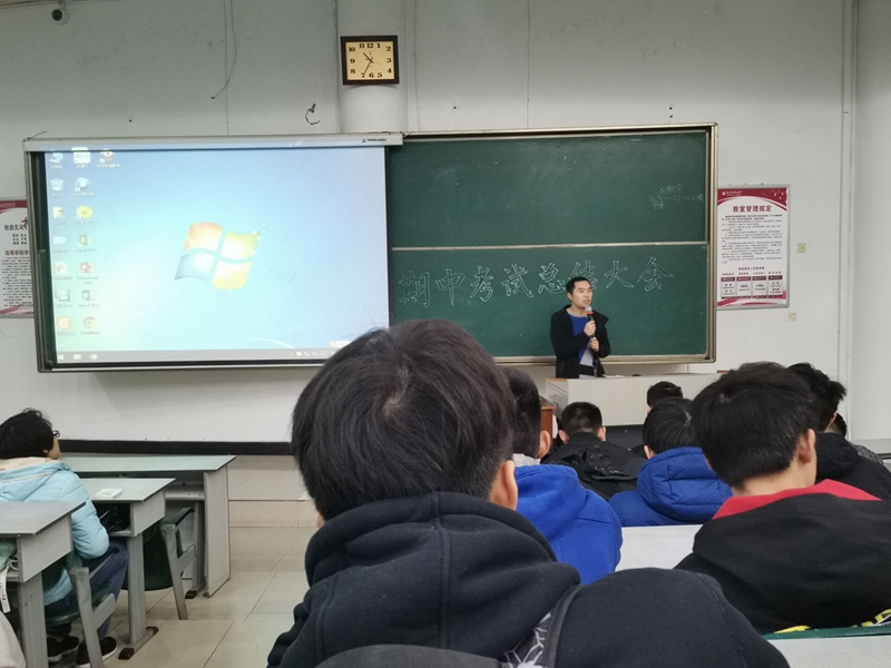 首先,老师们对期中考试成绩进行了分析,从学习目的、学生时间、学习方法等三方面着手,指出了这半学期来同学们在学习上存在的问题。会上,老师们对取得优异成绩的同学进行了表彰,同时请暂时落后同学重拾信心,重振旗鼓,厚积薄发。最后,年办老师提醒大家期末考试即将到来,要求同学们明确目标,制定计划,探索学习和复习的最佳方法,坚定信念,查漏补缺,全力以赴地取得好成绩。