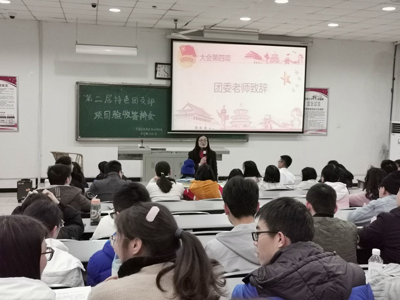大会在飘扬的团旗与嘹亮的歌声中拉开了序幕。随后各特色团支部汇报人依次进行成果展示,对本团支部本年度开展的各特色活动、取得的优异成绩、团支部成长经历等进行汇报总结,对评审提问从团支部建设、成长感悟等方面进行了答辩。