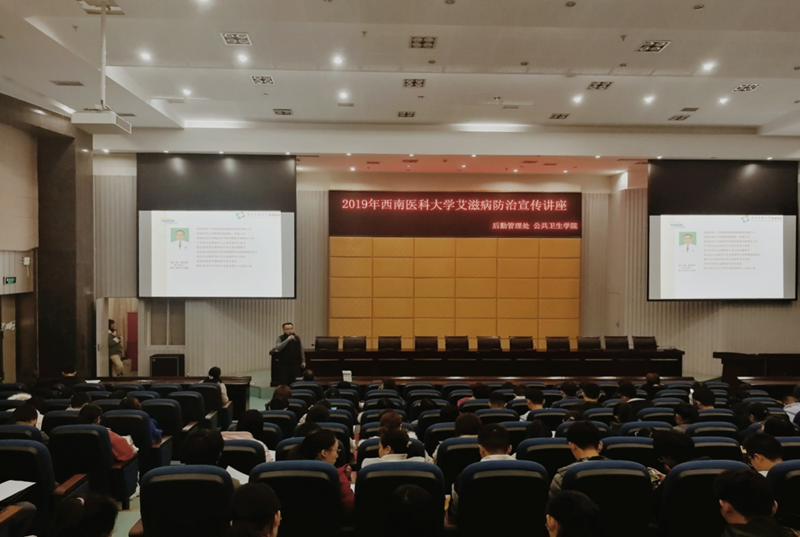 12月4日晚,由后勤管理处、公共卫生学院主办,HEP健康促进协会承办的2019年西南医科大学艾滋病防治宣传讲座在逸夫图书馆学术报告厅举行。此次讲座有幸邀请到附属医院专家——盛建云博士作为主讲嘉宾。后勤管理处副处长陈勇、校医院全体医生、公共卫生学院教师代表和两百余名同学聆听了讲座。公共卫生学院党总支副书记李星主持讲座。