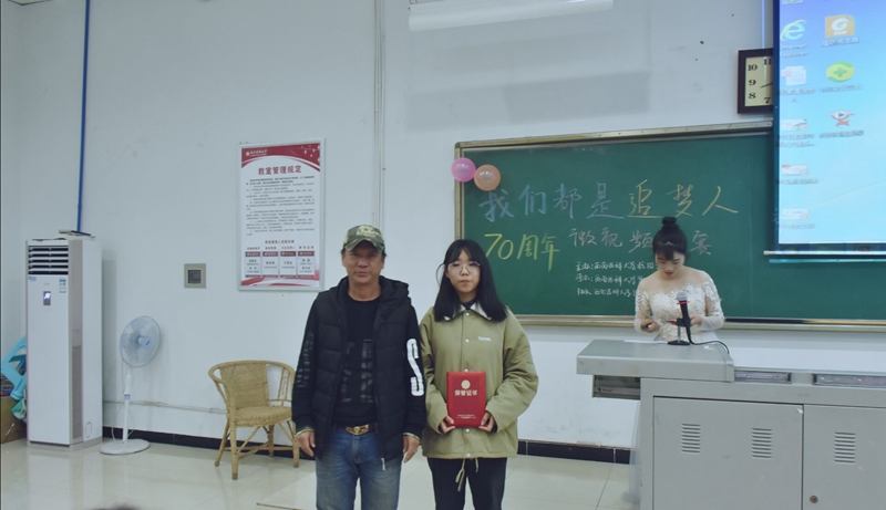 为庆祝中华人民共和国成立70周年,贯彻落实三全育人的政策,丰富广大学生校园生活,提升学生的综合素质,12月7日,由校团委主办,微电影协会承办的2019年微视频大赛决赛圆满结束。
