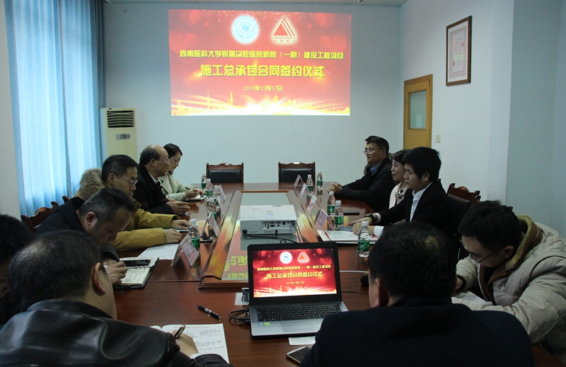 12月17日14点,附属口腔医院在小会议室举行新院(一期)建设工程项目施工总承包合同签约仪式。附属口腔医院党委书记李正新、院长肖金刚、党委副书记·纪委书记徐茜、副院长屈进、党政办主任古元、新院建设指挥部办公室主任邓学中、成都建工二建司党委副书记·纪委书记郝丽萍等参加签约仪式。