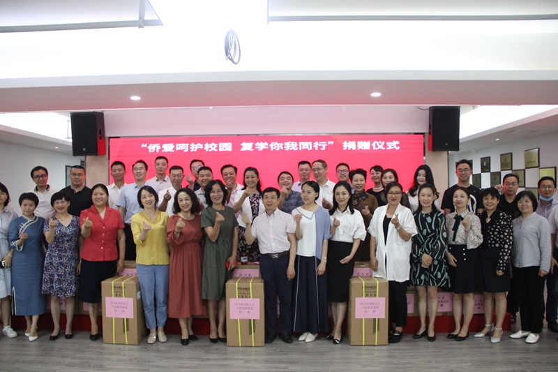 学校统一战线发挥联系广泛、资源丰富的独特优势,为学校返校复课疫情防控提供保障。近日,四川省华侨公益基金会向学校捐赠了一批防疫物资,包括非接触红外温度计(倍尔康JXB-178)55支、玺玛免洗手消毒凝胶(洗手液速干型500ml/瓶)500瓶、疫光宝盒(FTI-MED)40盒。5月29日,学校参加了由四川省华侨公益基金会、四川省侨商联合会联合举办的“侨爱呵护校园,复学你我同行”活动捐赠仪式,接受了捐赠物资。
