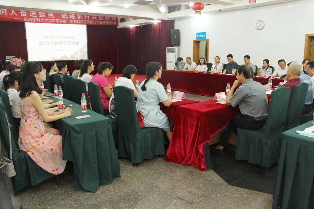 9月9日下午,附属口腔医院在附楼多功能厅召开第36个教师节庆祝大会。附属口腔医院院领导、部分退休院领导;职能部门负责人;各教研室主任、副主任、教学秘书;教龄30年以上的教师代表;学校2017-2020学年度教学名师、优秀教师、优秀教育工作者;第三届“良师挚友”获得者;附属口腔医院“翻转课堂”教学技能竞赛获奖者、部分学生代表参加庆祝会。会议由附属口腔医院党委副书记兼纪委书记王宏丽主持。