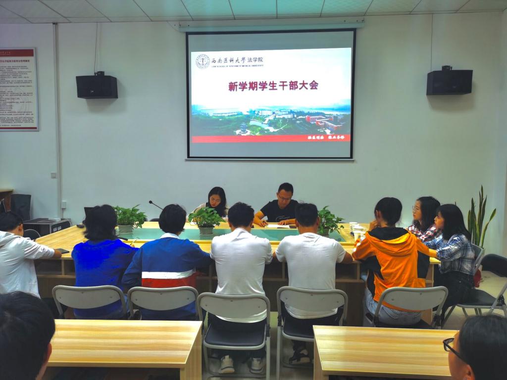 9月14日中午,法学院在图书资料室召开了新学期学生干部大会。法学院学生科科长周正颐、辅导员周婷以及全体学生干部参加了会议。