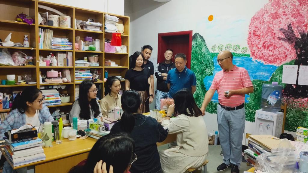 9月13日晚,医学检验系领导吕春、陶华林率党政办公室、学生科老师一行深入城北和忠山学生寝室,逐一走访返校学生,对医学检验系返校的学生表达亲切的关怀和真挚的慰问。