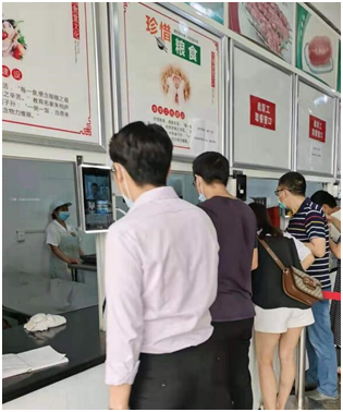 新增教职工刷脸支付机,教职工只需站在人脸识别设备前确保头部全部显示在屏幕上,确认为本人信息点击“确认”即可进行支付就餐。