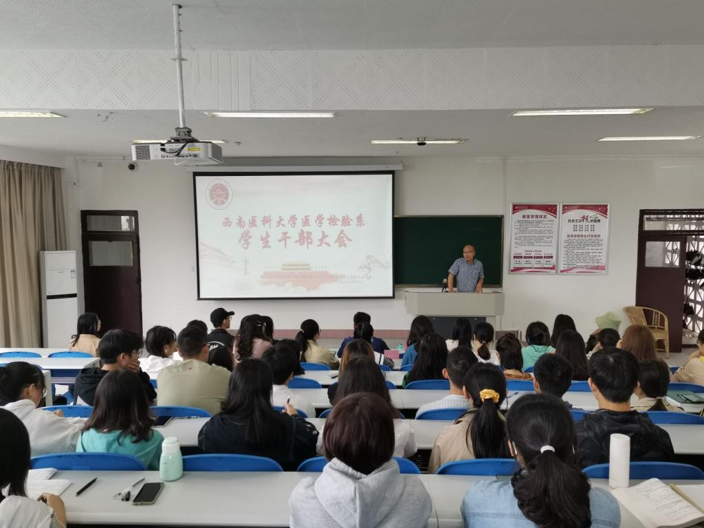 9月22日上午,医学检验系在忠山16阶梯教室召开新学期学生干部大会,系党总支书记吕春、相关教师、2018级、2019级团总支学生会主要干部、各班班长、生活委员及2020级助理班主任参加会议。会议由学生科副科长何顺姣主持。