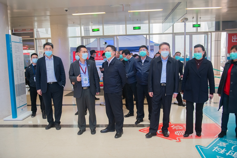 杨兴平一行在附属医院康健中心院区现场调研附属医院与泸州市医保局探索创新试点共同设置的医保服务管理中心和融合服务平台,同时详细了解相关工作流程和保障措施。