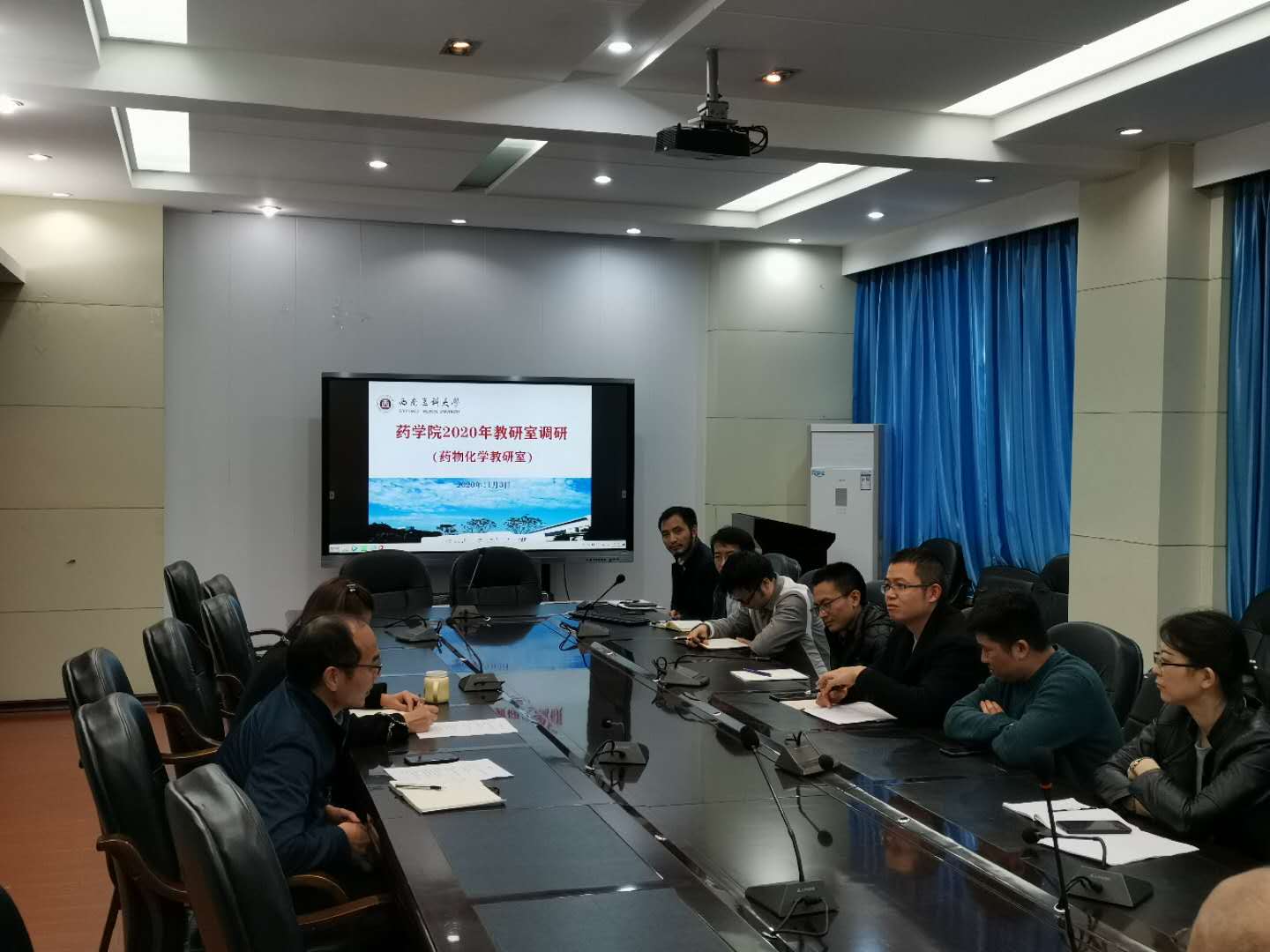 韦思平提到,希望各教研室以学校博士学位授予单位(点)申报为契机,对标对点、凝心聚力推动药学院在人才培养、科学研究、社会服务和文化传承等各项事业协同发展,由点到面实现教学名师、重大项目等方面的突破,推动药学院事业实现内涵式发展。