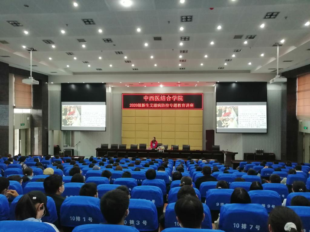 为了让学生更多的了解艾滋病知识,增强主动防艾意识,11月8日下午,中西医结合学院于逸夫图书馆学术报告厅举行2020级新生艾滋病防控专题教育讲座,讲座由泸州市龙马潭区疾病预防控制中心性病与艾滋病防控科冷竹红主讲,中西医结合学院学生科科长马俊,2020级辅导员周霞,中西医结合学院2020级全体新生参加了本次讲座, 讲座由马俊主持。