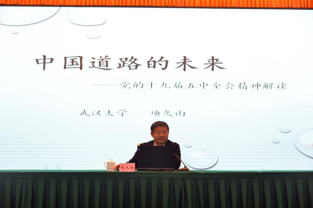 11月7日,马克思主义学院在南苑会议中心举行学习十九届五中全会精神专题讲座。武汉大学教授,博士生导师项久雨以《中国道路的未来——党的十九届五中全会精神解读》做了专题报告,学院全体领导、教师参加了本次讲座。此次讲座由马克思主义学院院长黄晓利主持。