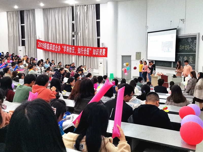 为鼓励同学们在基础医学学习道路上不断创新、突破自我,11月19日下午,2019级临床综合办在明理楼301举办了“学海拾贝,知行合医”知识竞赛。同学们组成七支队伍参加了本次比赛。基础医学院副书记黄钰、年办主任唐弋、辅导员刘承珍出席本次比赛。
