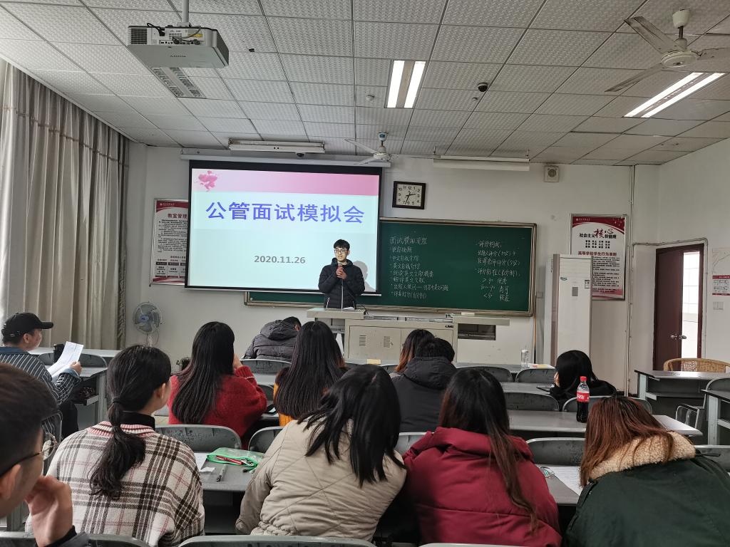 为提高学生就业、考研等面试技巧,卫生事业管理教研室积极探索课堂实践教学改革,利用课堂教学设计,开展专业面试模拟会,由卫生事业管理教研室教师曾雪琴主持,2017级公共事业管理专业学生全程参与。