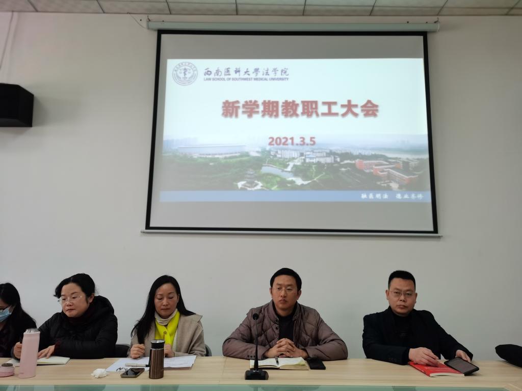 3月5日上午,法学院2021年新学期教职工大会在法学院图书资料室召开,全体教职工参会,会议由法学院院长罗刚主持。