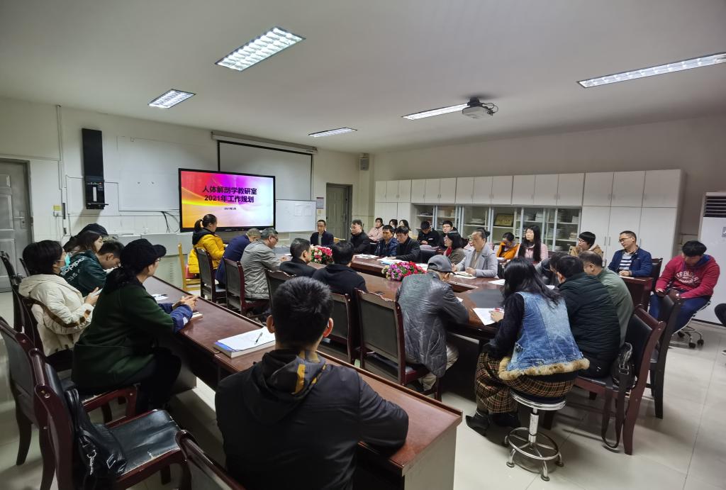 3月5日上午,在人体解剖学会议室,教研室全体教师召开了2021年度“新学期、新起点、新规划”主题会议活动,会议由教研室主任余崇林主持。会上,余崇林回顾了上学期教研室工作情况,指出了取得的成绩和不足,并鼓励教研室各位教师,在新的一年要鼓足干劲,要有新起点、新规划,做好教学和科研工作,做到教学、科研齐头并进。接着教研室领导小组成员先后发言,从教学、科研、实验室建设、党支部工作等多方面构建2021年人体解剖学教研室新的起点和新的规划,通过此次会议的召开,教师们纷纷表示不仅要教好书育好人,还要加大在科研方面的投入,使科研更好地为教学服务。