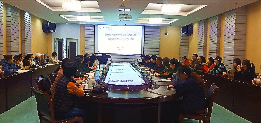 3月10日上午,公共卫生学院第十届全国大学生医学技能竞赛(预防医学)备赛工作阶段性总结会在城北校区第三会议室召开。学校教务处副处长刘力、教务处相关科室负责人,公共卫生学院处科级干部、学院培训教师及20名参赛同学参加了会议,学院副院长汤艳主持会议。