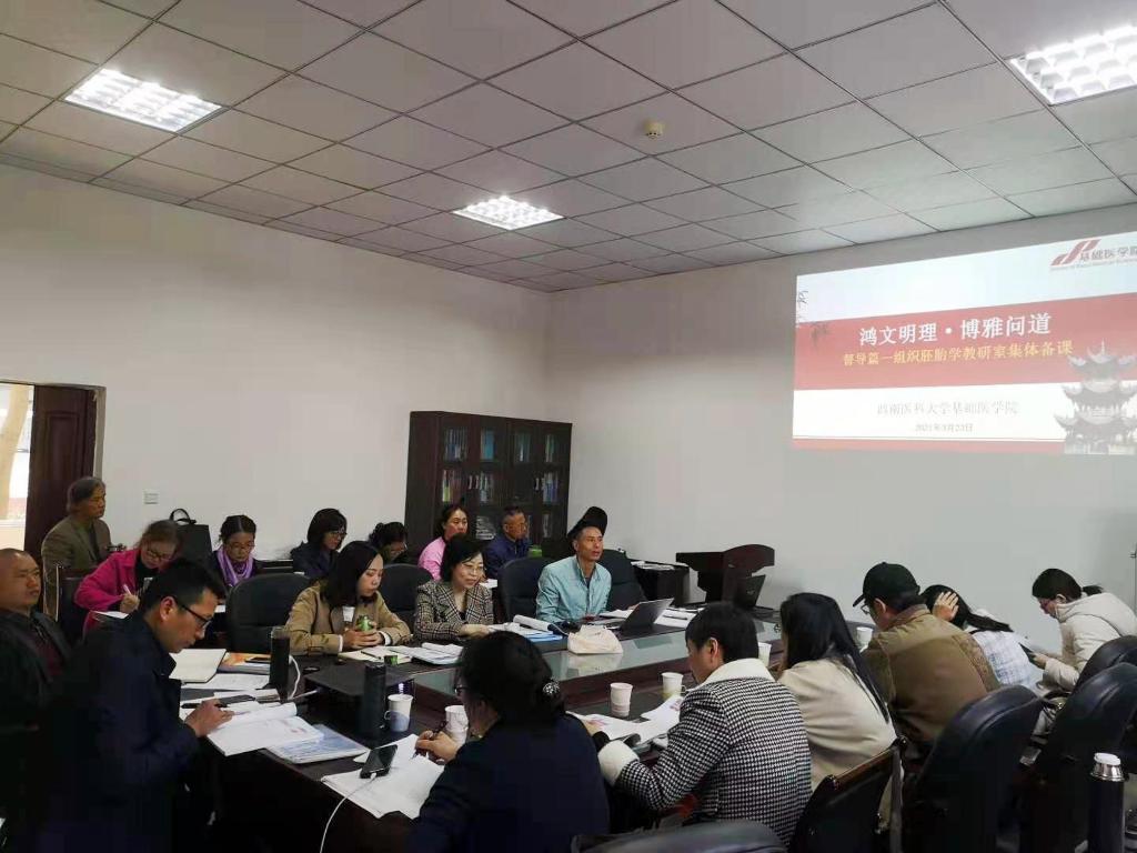 为进一步强化教学过程管理,提高集体备课质量,基础医学院组织校院两级教学督导专家,于3月23日下午,在鸿文楼一楼小会议室对组织胚胎学教研室的集体备课进行全程督导。校教学督导专家邬丽莎、尹德辉、王晓红、谢惠波,基础医学院教学督导专家、教务科、组织胚胎学教研室全体教师参加了本次督导活动。